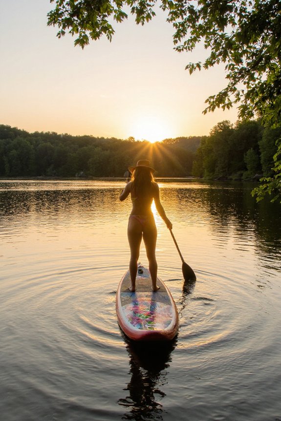The numbers don’t lie—women’s participation in paddle sports has climbed by 3% since 2016, while male participation has seen a slight decline. The balance factor is essential here; women often excel at SUP due to a lower center of gravity. This makes it easier for you to learn the sport and stay upright on your board. You’ll quickly notice how this balance not only enhances your skills but also builds your confidence as you navigate different water conditions. Additionally, the global stand-up paddleboard market is projected to grow at a compound annual growth rate of 7% from 2021 to 2026, highlighting the increasing popularity of the sport. As a result, women becoming the fastest-growing demographic in paddleboarding indicates a vibrant future for female paddlers.